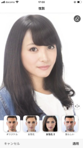 これをアプリで読み込んで、「女性化」をただタップするだけで、、、、、!!!